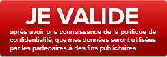 Vous nous avez déclaré être majeur(e) et accepter le réglement. Vous avez lu et acceptez la politique de confidentialité. Je passe à l'étape suivante sans accepter la communication de mes données aux partenaires en cliquant-ici.